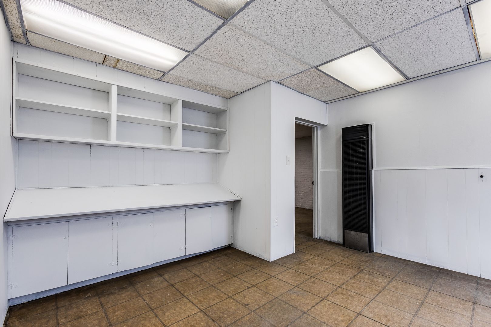 Industry on Industry | Space #9 at 829 Industry. Compact, functional, and ready for you! Space #9 is a 200 SF office/studio designed for focused work and creative use. This space features built-in cabinets and shelving for smart storage, plus a dedicated drafting/work area that makes it a great fit for artists, designers, makers, or anyone who needs an efficient workspace.